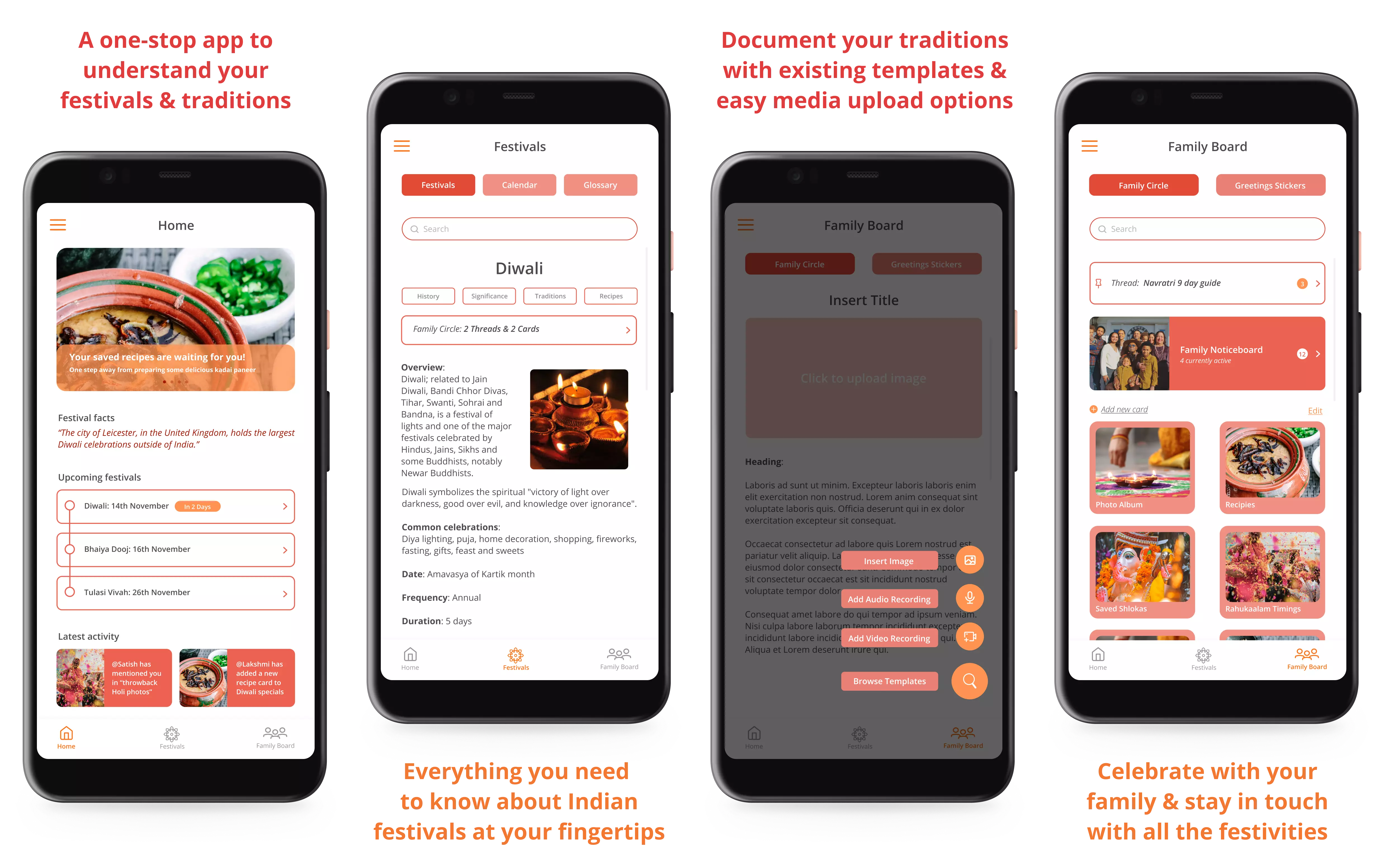 To create a solution that will offer a one-stop platform to understand festival traditions, preserve the various niche practices of different cultures and offer a family environment by enabling all members to be on board.