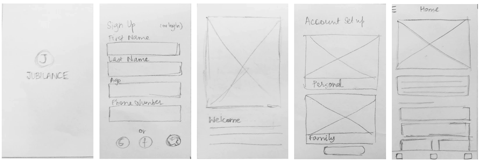 To start off and visualize the UI of the app, I sketched the initial sign up + onboarding flow